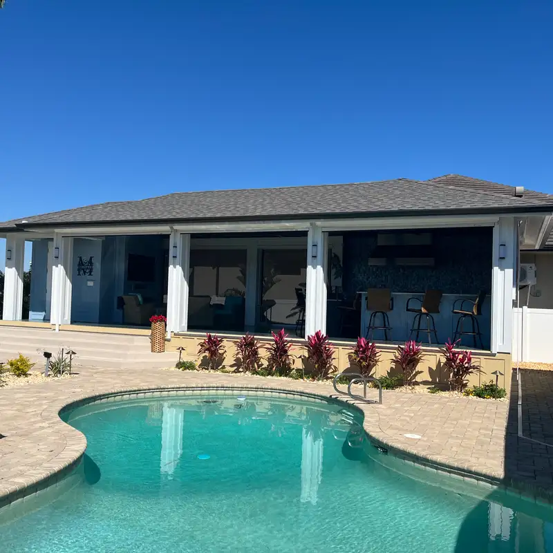 Constructed a new pool house/cabana from the ground up, with a fully functional outdoor kitchen and beautiful gathering space with a built-in electric fireplace.