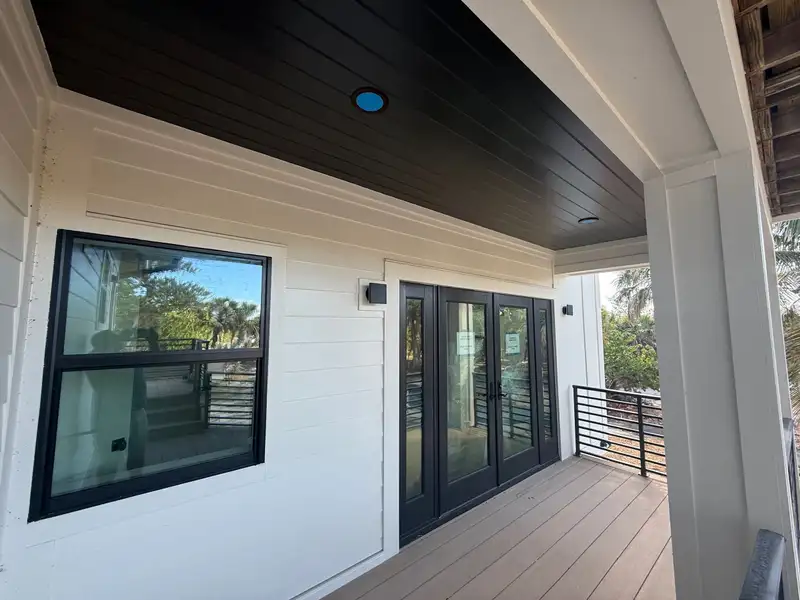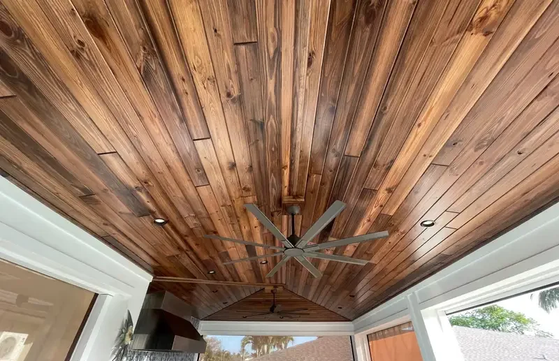 Handcrafted wood ceilings with rich texture and seamless lines, adding warmth, charm, and a custom finish to porches, patios, and interior rooms.