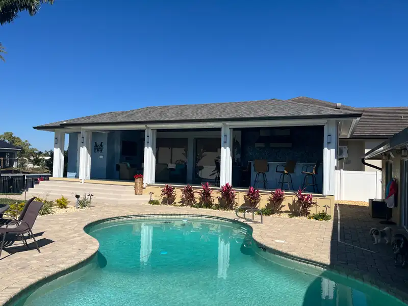 Fully equipped outdoor living spaces featuring integrated utilities, custom masonry, and weather-resistant finishes designed for year-round entertaining and relaxation.